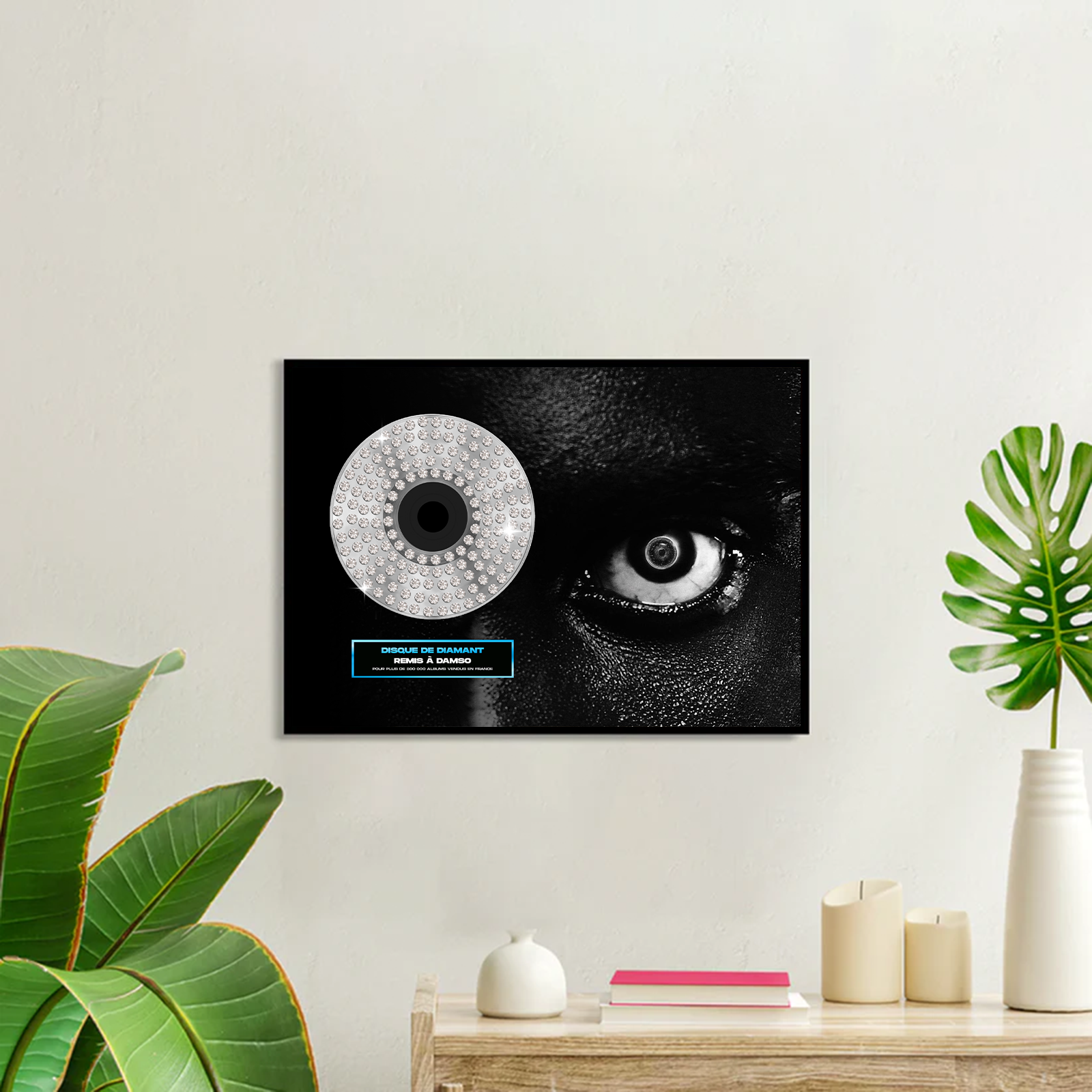 Tu peux créer ton disque d'or personnalisé avec la pochette de l'artiste que tu veux, ou bien avec une de tes propres photos !