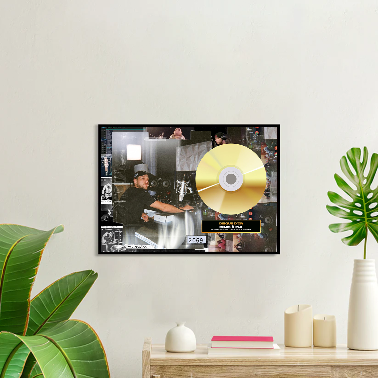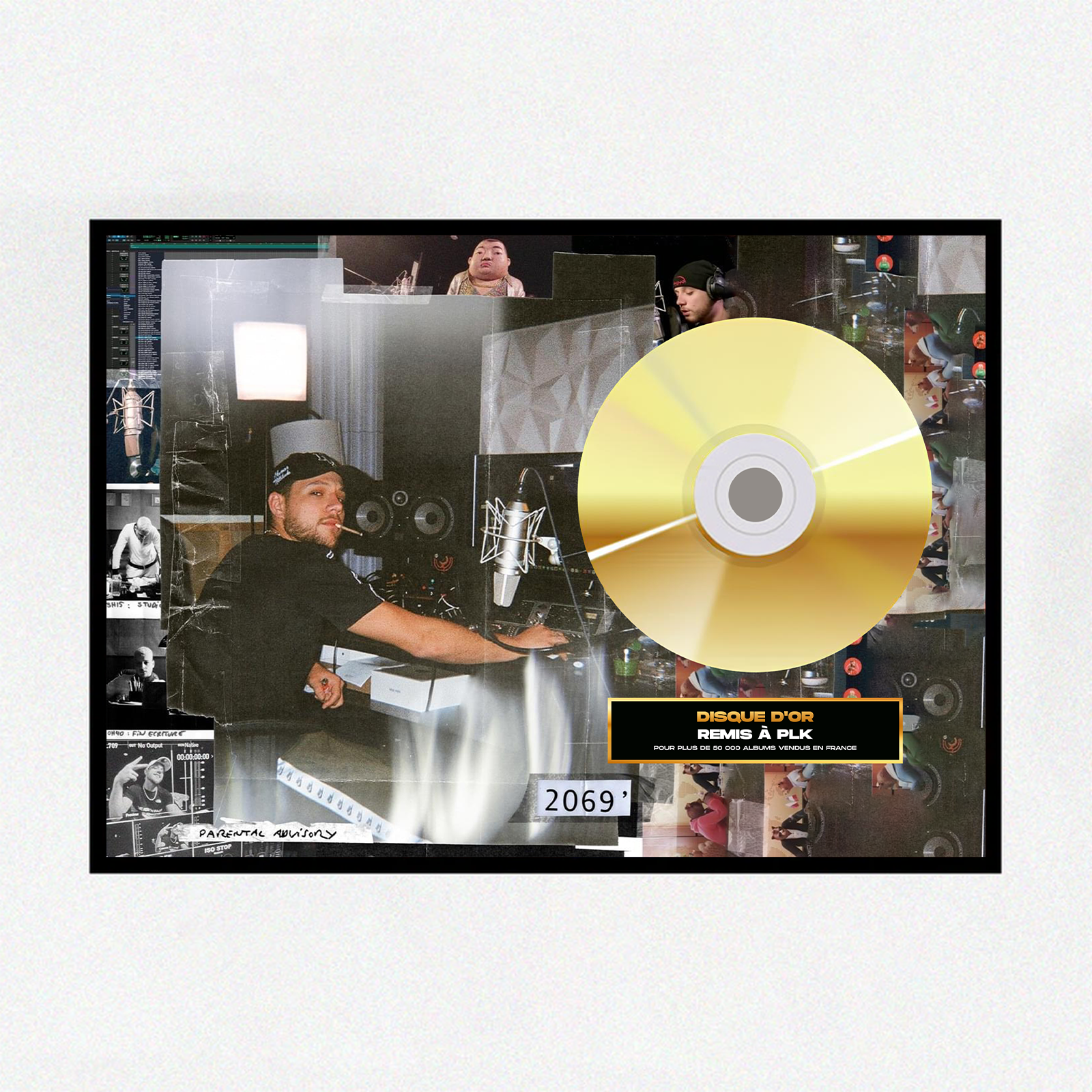 Tu peux créer ton disque d'or personnalisé avec la pochette de l'artiste que tu veux, ou bien avec une de tes propres photos !
