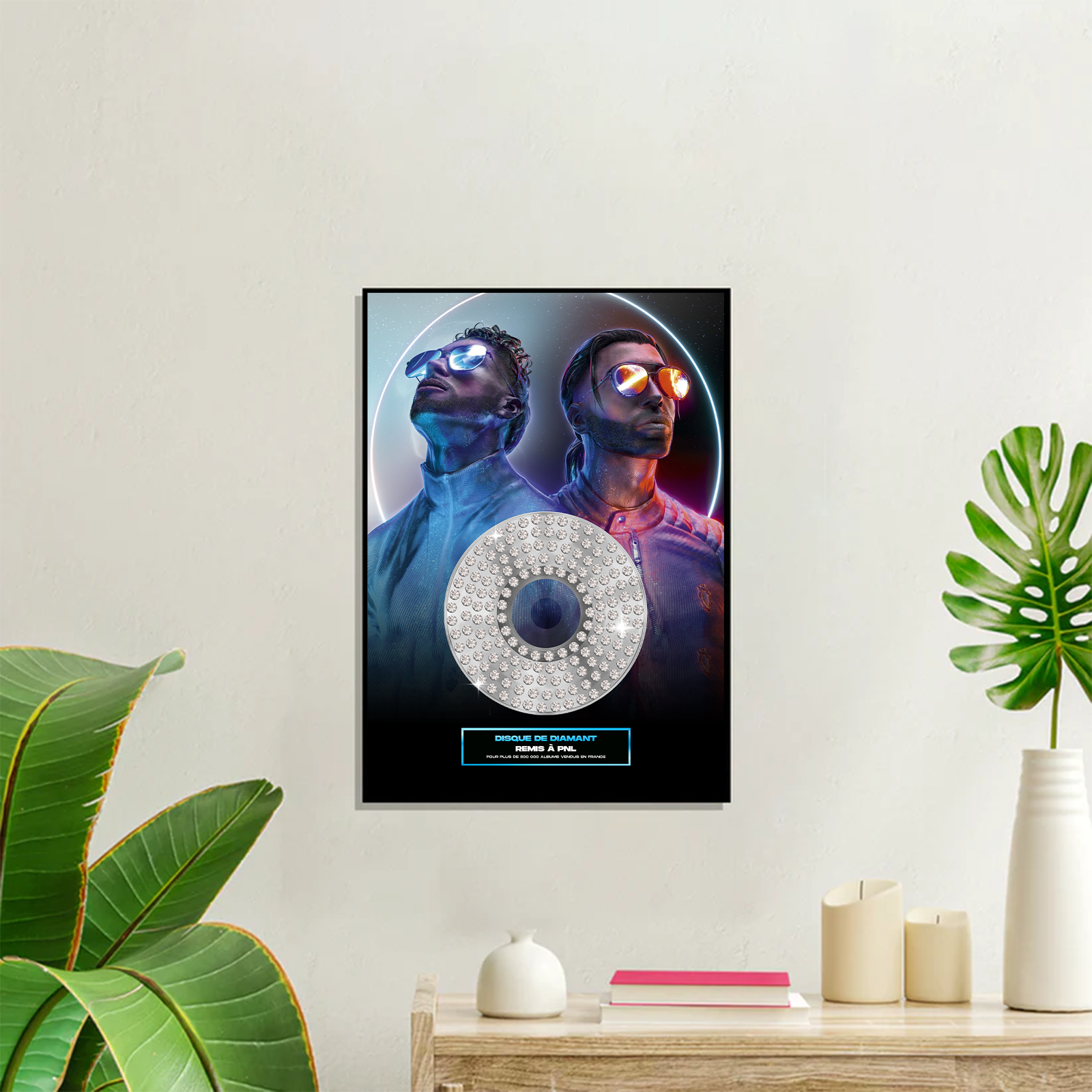 Tu peux créer ton disque d'or personnalisé avec la pochette de l'artiste que tu veux, ou bien avec une de tes propres photos !